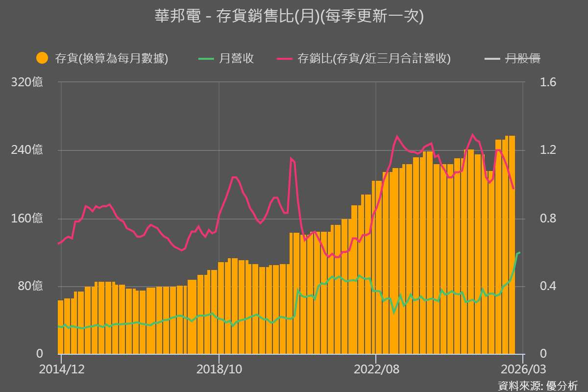 從庫存變化來看,華邦電自 2025 年第 2 季開始出現明顯轉折,存貨金額持續上升,但存銷比同步下滑;需求開始回溫,營運正式走出谷底。