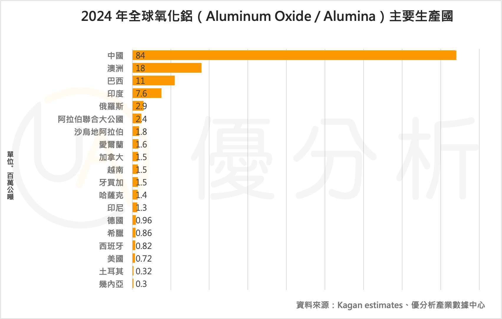中國是全球最大的氧化鋁(Aluminum Oxide / Alumina)供應國,產量遠遠超過其他國家,約為排名第二的澳洲的四倍以上。市場分析師Kaan Peker指出,澳洲金屬加工業因高成本及氧化鋁價格持續低迷,競爭力正逐步流失。此次減產約占中國外氧化鋁市場供應的3%,有助於抵消因印尼低成本產能擴張而造成的價格下跌壓力。
