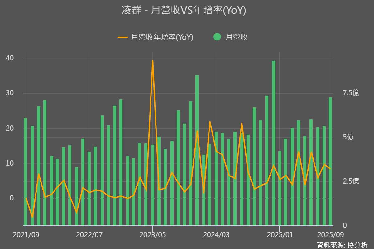 2025年10月27日(優分析/產業數據中心報導)⸺ 凌群 (2453-TW) 9 月營收月增 28.44%、年增 8.38%,累計前 9 月營收年增 7.96%。顯示 AI 專案推進對營收已有帶動跡象,但機器人仍處驗證,規模化收入需看 2026 年後醫院導入速度。在新品尚處驗證期的情況下,傳統 SI 與既有 AI 專案貢獻支撐基本盤成長。