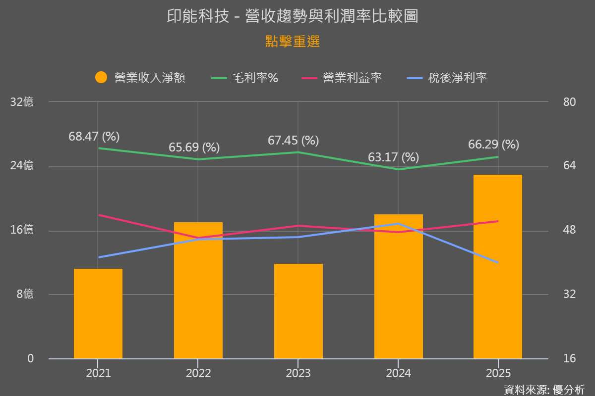 高毛利水準,反映設備產品具備一定技術門檻與市場競爭力。從上圖可以看到,2025 年毛利率為 66.29%,並長期維持在高檔區間。