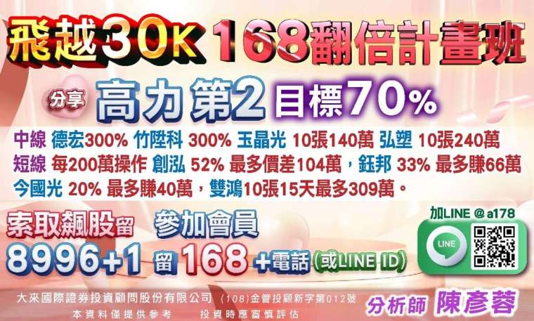 預告 高力 (8996-TW),三個月翻倍 100%。【榮科 第 2】,即將發動目標翻倍,加 line 留言【777+2】索取。