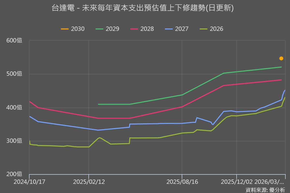 同時,2025 年資本支出達 461 億元,年增約 38%,創新高;2026 年將略高於 2025 年,主要投入 AI 電源、液冷、HVDC 與相關產線。