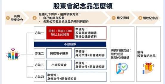 確認是否要 1,000 股以上,或公司其他發放相關公告的條件,才能領取股東會紀念品,依各公司開會通知書為準
