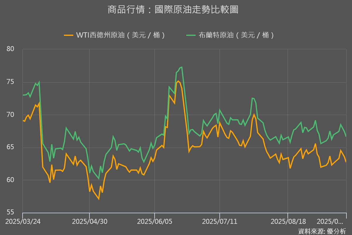 週一(9/22),國際油價因歐洲與中東局勢緊張小幅上揚。上週則呈現小幅下跌,反映市場對供應增加與需求走弱的憂慮。