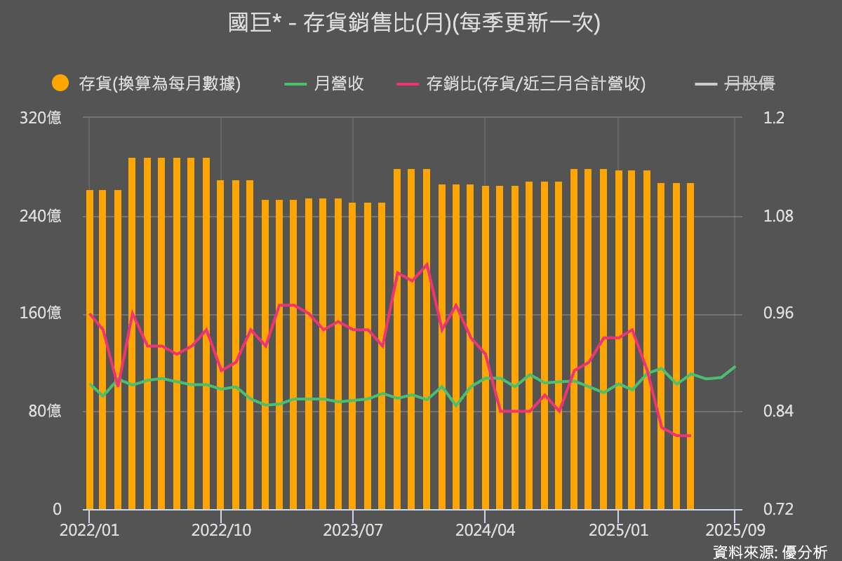 當你看到一家公司的存貨金額已經回落到歷史較低的區間,且庫存相對於營收的比值也已經回到平均水平,甚至偏低,通常可以確定循環已經落底了,公司正在等待復甦機會。