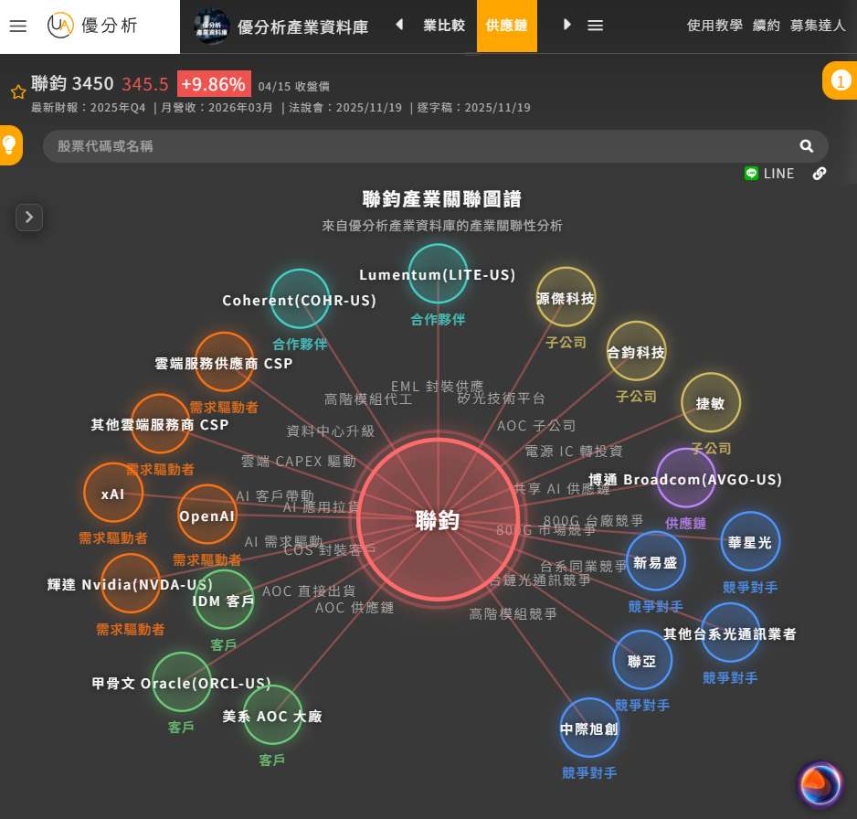 打開資料庫當中的供應鏈功能就可以看到跟公司有關的供應鏈、客戶、對手等等。