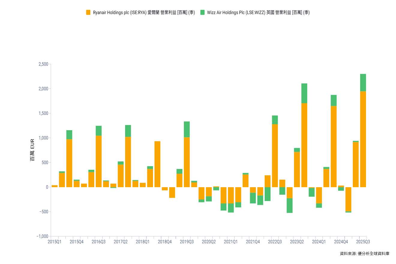 歐洲最大廉價航空萊恩航空於 2025 年 12 月載運1,450 萬名旅客,年增 7%;威茲航空同期載運585 萬名旅客,年增 15.5%,成長幅度高於同業。萊恩航空 12 月共營運 82,000 班航班,載客率維持在 92%,與去年同期持平。