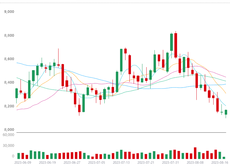 倫敦金屬交易所(LME)的三個月銅期貨在GMT標準時間0553時下跌0.3%至每噸$8,143。期貨價格在交易早些時候一度下跌至$8,120,為6月1日以來的最低水平。
