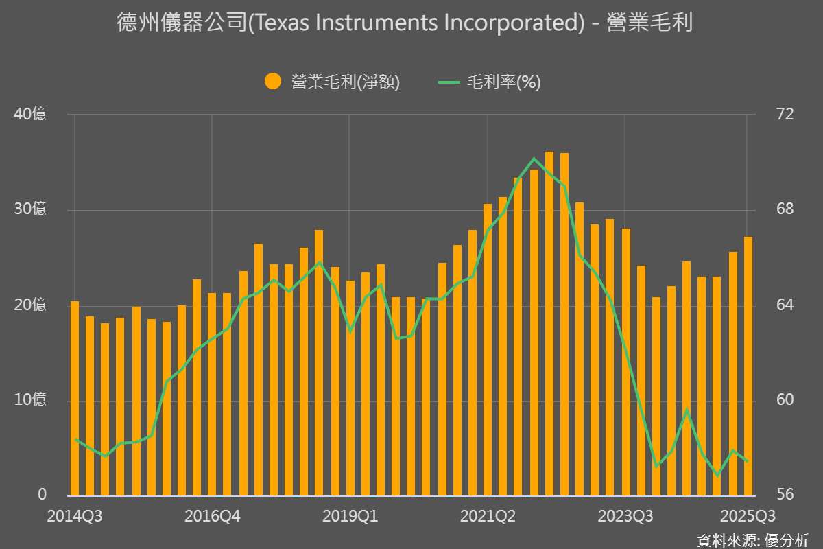 從營運面觀察,德州儀器第三季度毛利率季減50個基點,顯示庫存消化與產能利用率改善進展有限。低迷需求與潛在關稅風險將使獲利率在未來數季持續承壓。公司雖已承諾投資超過600億以擴充美國製造產能,惟若中美貿易緊張再起,成效仍有待觀察。