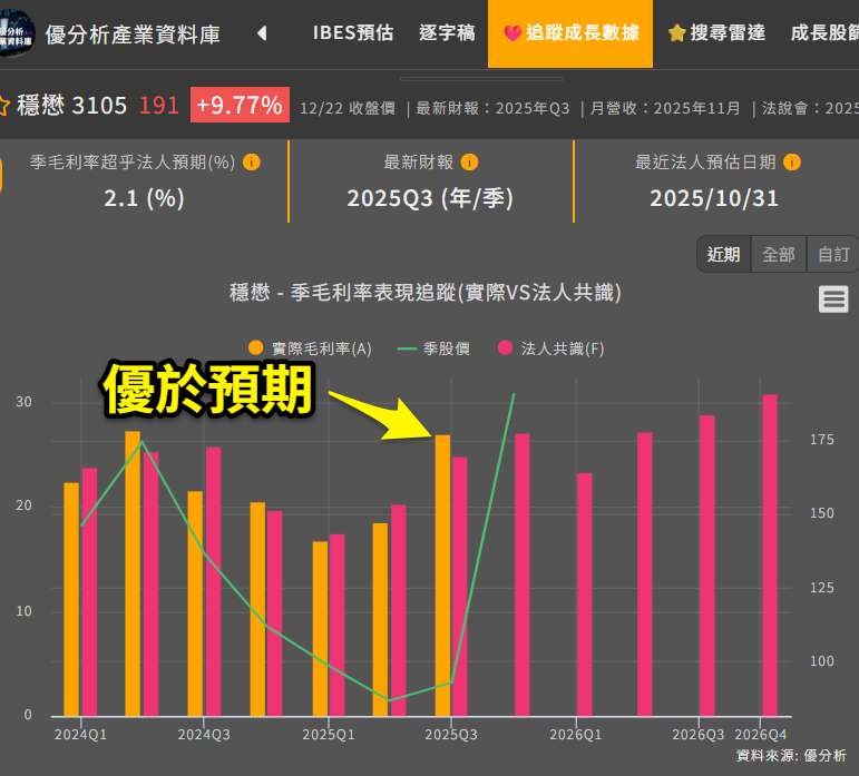 產能利用率回升加上產品組合改善,使毛利率提升至26.9%,高於市場預期。