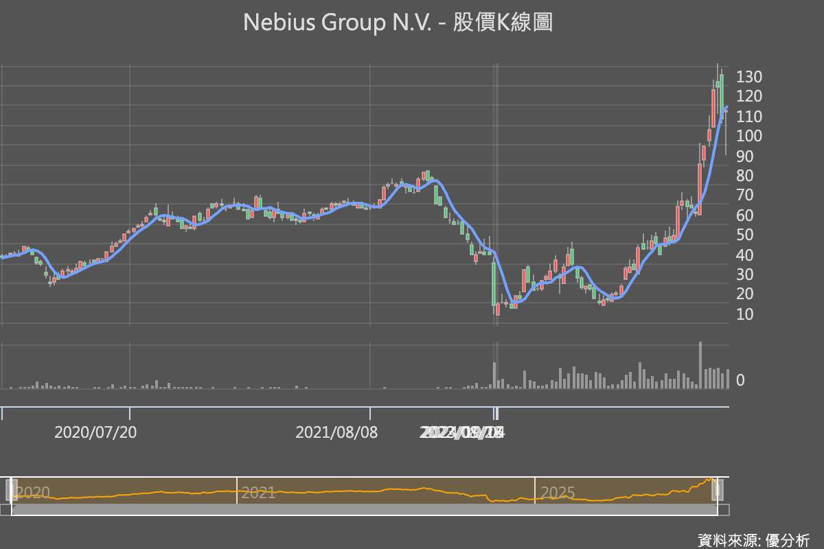 【2025年10月26日,優分析/產業數據中心報導】⸺AI雲端新勢力Nebius Group(NBIS-US)今年無疑是華爾街最受矚目的AI概念股之一。這家自俄羅斯搜尋巨頭Yandex分拆出來的AI雲服務公司,上市之後股價如脫韁野馬般飆升。今年以來累計上漲284%,公司市值一舉衝上294億美元,在2025年9月宣布與微軟Microsoft(MSFT-US)簽下金額高達194億美元的長期合作協議後,正式躋身全球 Tier-1 AI雲供應商。