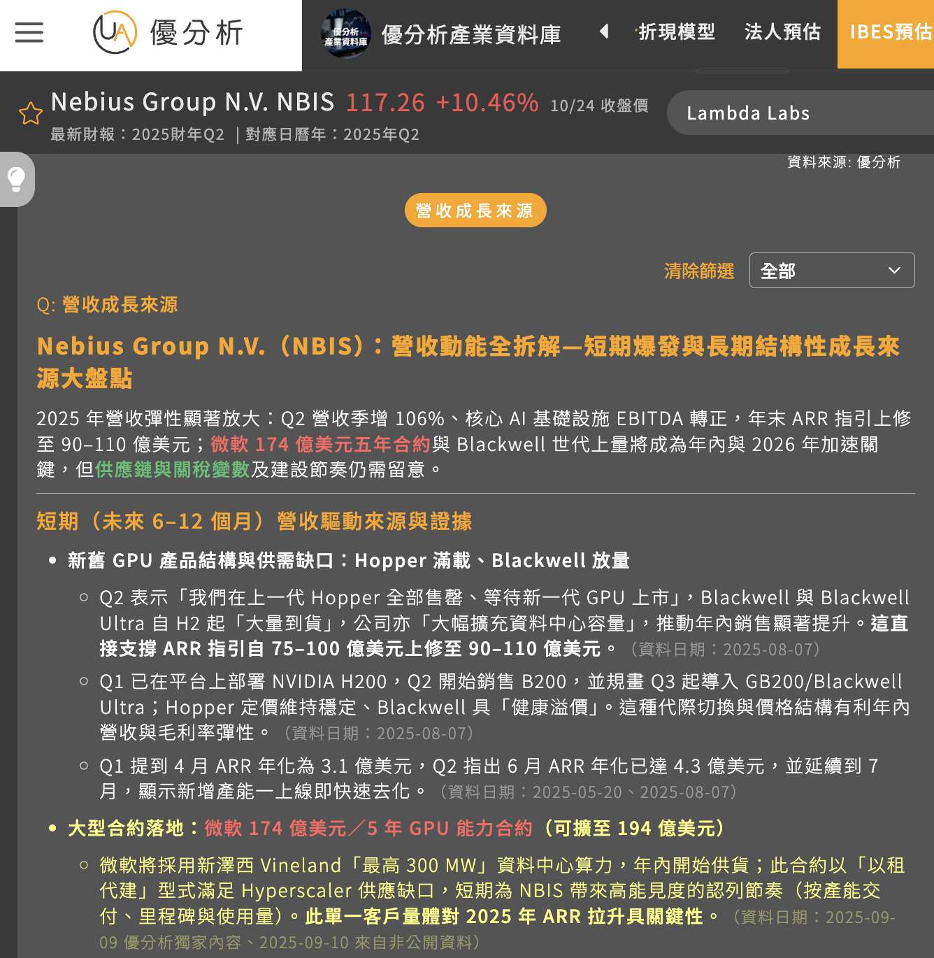 儘管如此,法人整體評價仍偏正面。長期來看,Nebius憑藉其自研架構與高效率資料中心設計,有望在Tier-2 AI雲端中脫穎而出,並在2026年以前穩定擴大其在美國市場的市占率。