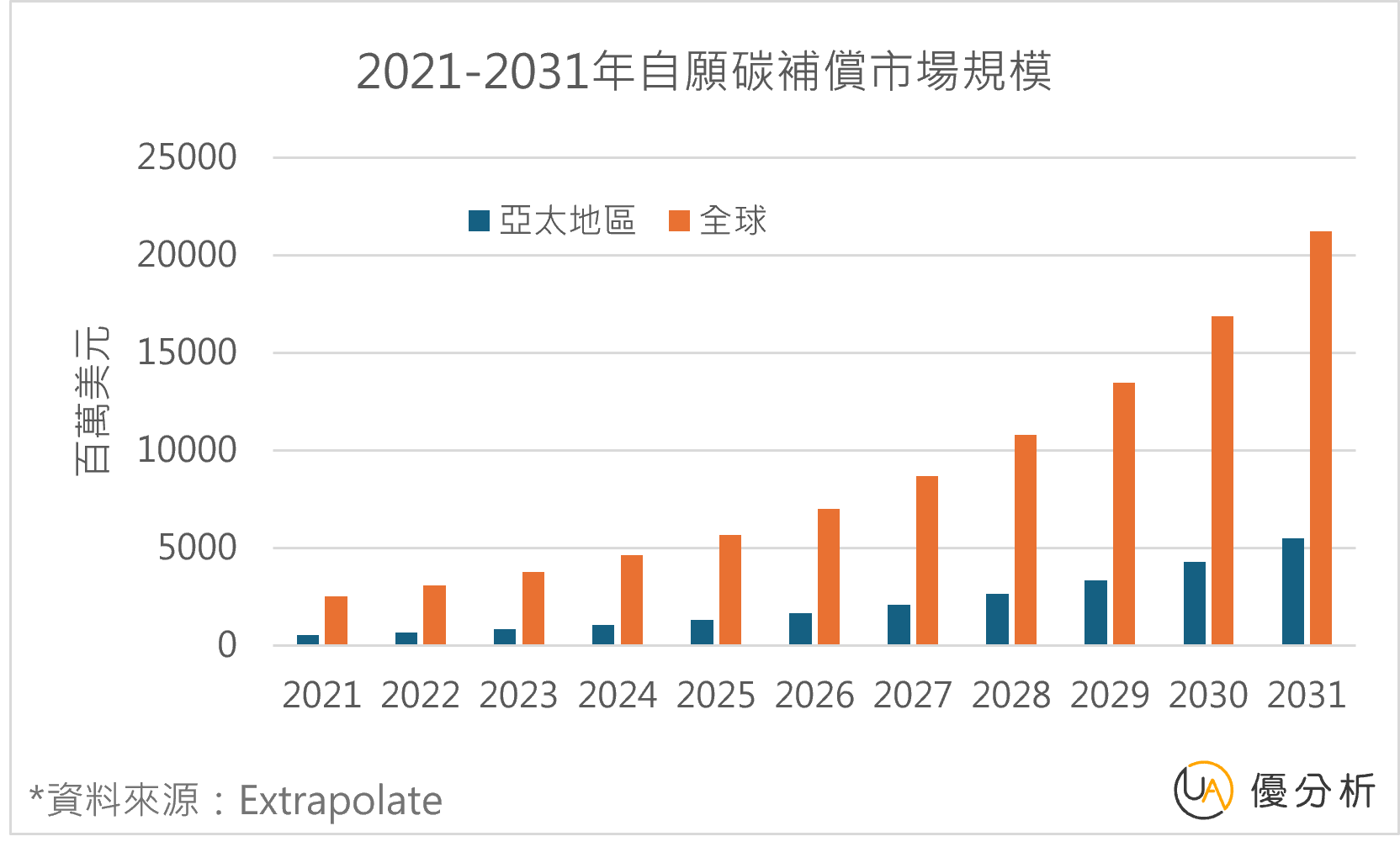 依據Extrapolate的資料顯示,亞太地區(APAC)在全球自願碳市場中扮演著重要角色。2023年,亞太地區佔全球市場規模的22%,市值達到8.28億美元,使其成為僅次於歐洲的第二大區域市場。