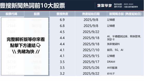 10 月首個交易日,台股在台積電 (2330)、** 鴻海 (2317)** 等權值股領軍下開出紅盤,盤中一度大漲挑戰歷史高點,顯示多頭格局未變。然而,尾盤電子股遭遇賣壓,漲幅明顯收斂,指數終場小漲作收,量能則維持高檔。