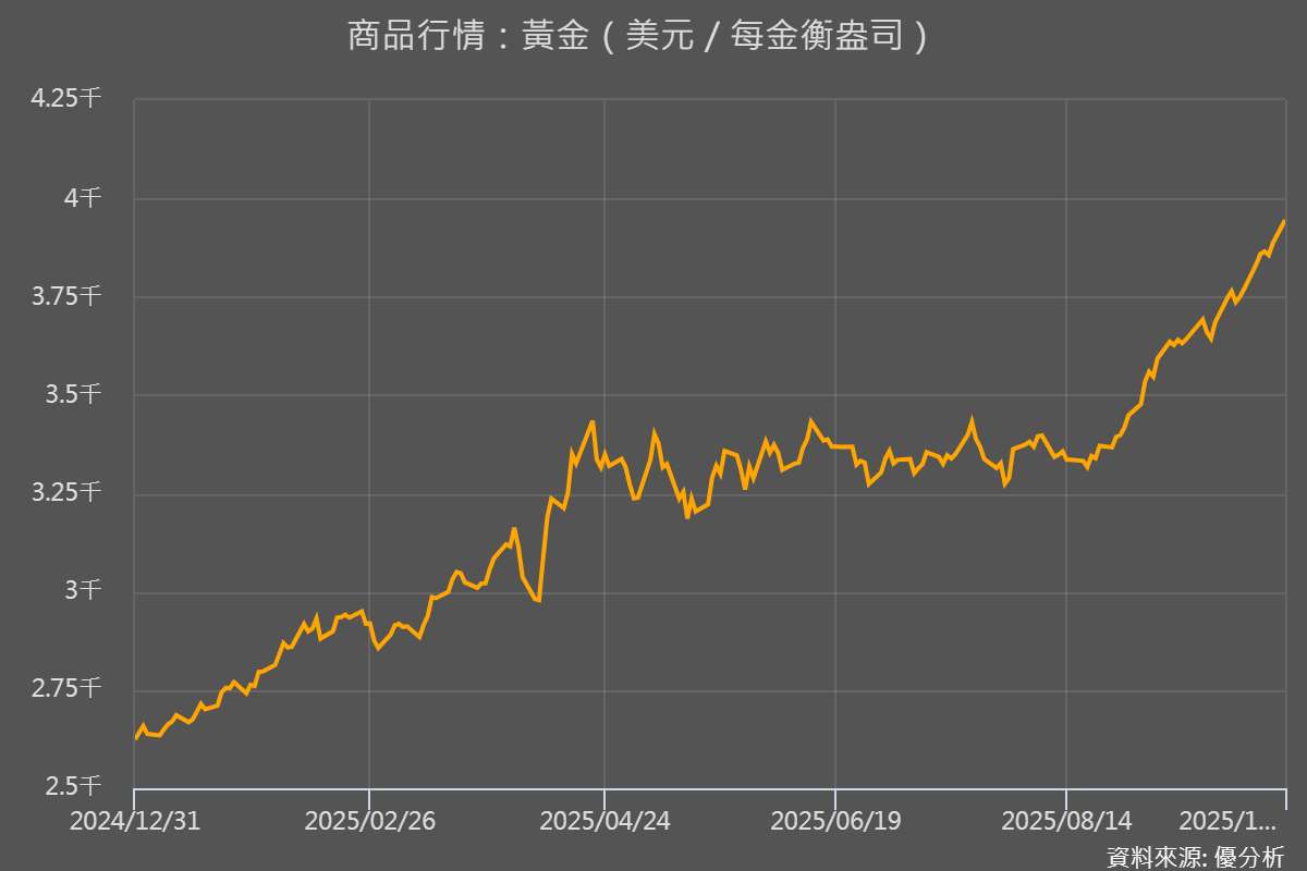 在貨幣政策方面,堪薩斯聯邦準備銀行總裁Jeff Schmid表示,雖然聯準會必須在緊縮過度與寬鬆過度兩種風險間取得平衡,但他傾向暫停降息,強調仍須關注通膨過高的風險。不過根據 FedWatch 工具,市場普遍預期聯準會在10月與12月仍將各降息1碼(25個基點),機率分別達95%與83%。低利率環境通常有利於無孳息資產如黃金的表現。