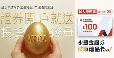 限時活動新戶輸入「sino100」送 100 元投資金!