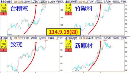 半導體供應鏈:竹陞科 (6739-TW)、兆聯實業 (6944-TW)、新應材 (4749-TW)、台特化 (4772-TW)、達興材 (5234-TW)、國精化 (4722-TW)、昇陽半 (8028-TW)、華景電 (6788-TW)、致茂 (2360-TW)、中砂 (1560-TW)