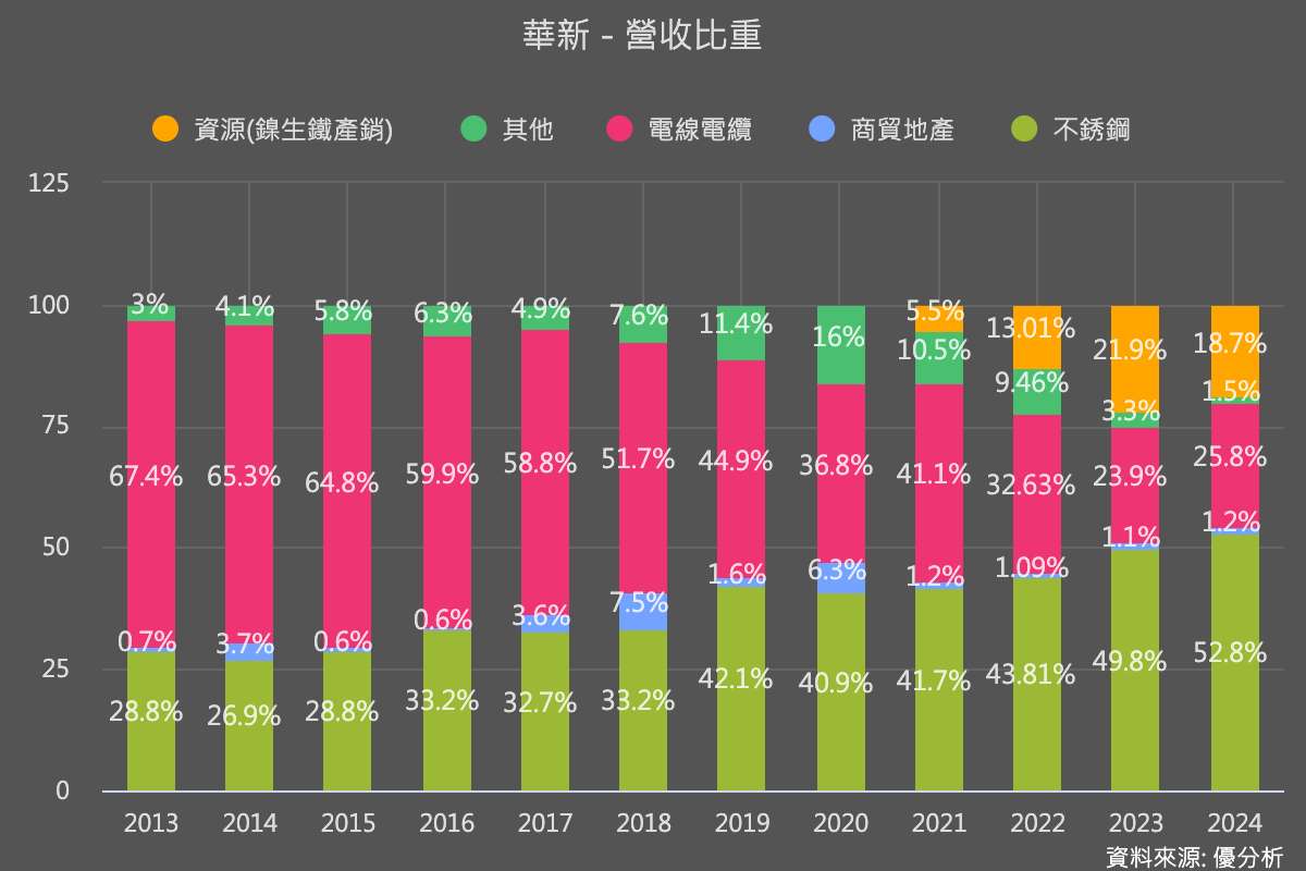 2025年11月13日(優分析/產業數據中心報導)⸺ 華新(1605-TW)近兩年積極調整營運結構,布局海底電纜與歐洲高階金屬製品市場,以降低不銹鋼與鎳價波動對獲利的影響。市場關注兩大新事業能否在 2026–2027 年成為主要成長引擎,填補資源與不銹鋼事業的獲利缺口。