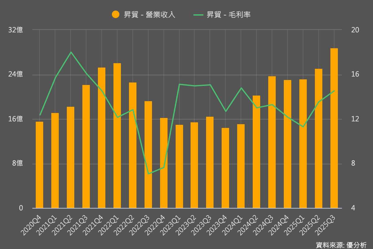 相較之下,錫膏、低溫錫膏與散熱銀膏等高附加價值產品,則更直接受惠於 AI 伺服器、先進封裝與散熱模組需求成長。法人指出,錫膏目前已是昇貿最核心的營收引擎,營收占比約二至三成,隨 AI 應用放量,2026 年半導體相關營收比重可望進一步提升。由於此類產品更強調配方技術、客戶認證與穩定供應,錫價波動對毛利影響相對可控。