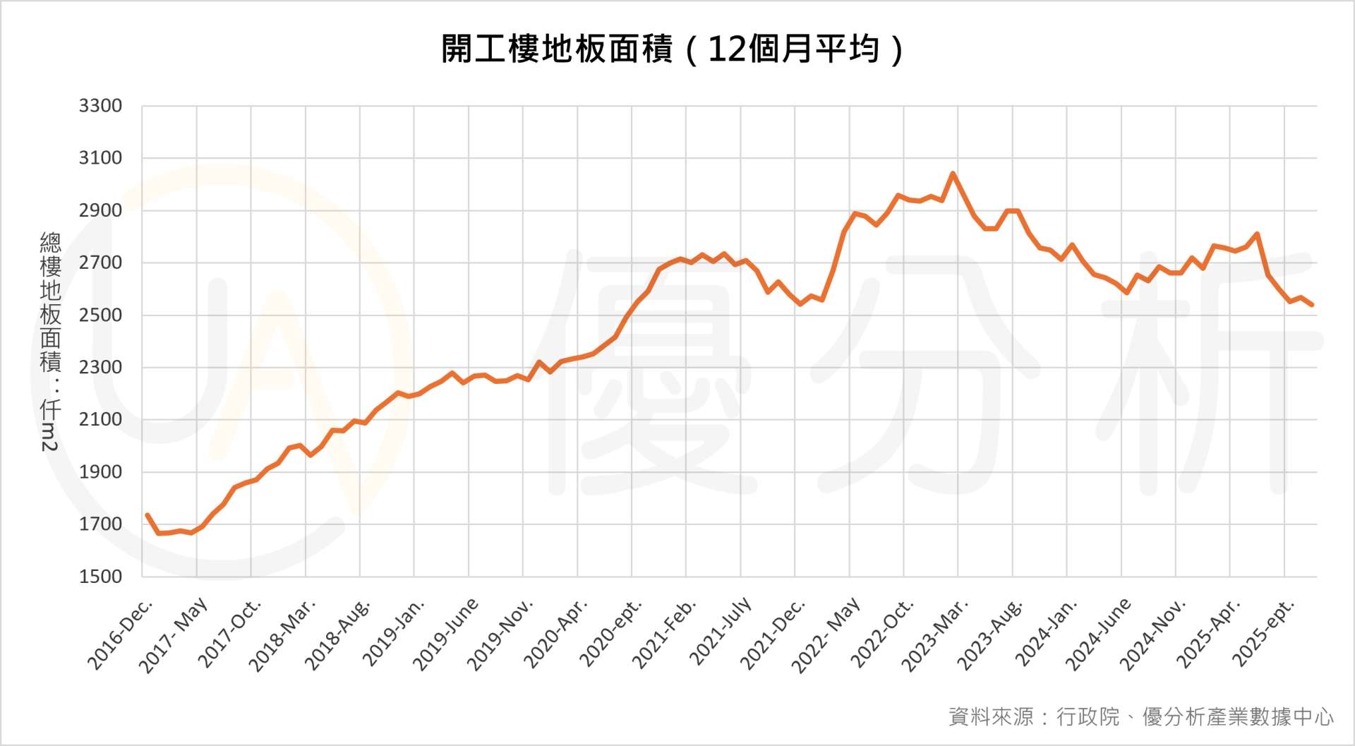 近期台灣住宅開工樓地板面積明顯下滑,顯示在營建成本高漲、缺工缺料等各種因素影響下,建商已放緩推案腳步,住宅相關需求的逆風正逐步浮現。