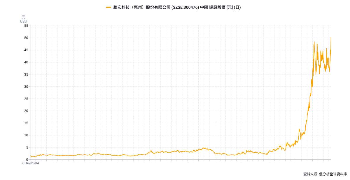 勝宏科技目前已在深圳掛牌,過去一年股價大漲近7倍。